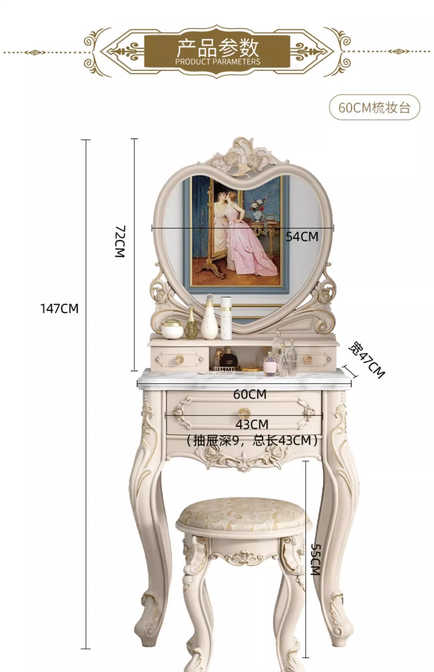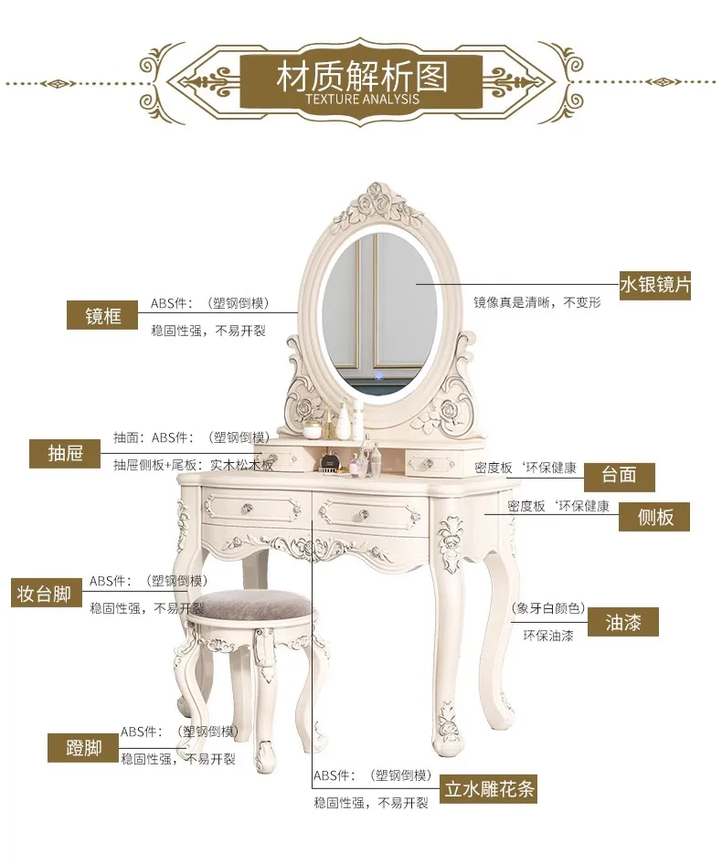 Modern Luxury Vanity Table Bedroom Nordic Makeup European Vanity Table Storage Mirror Penteadeira Quarto Bedroom Furniture
